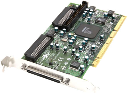 | Single-channel Ultra320 SCSI card with legacy SCSI connectors and HostRAID RAID 0, 1 and 10 for data protection | |